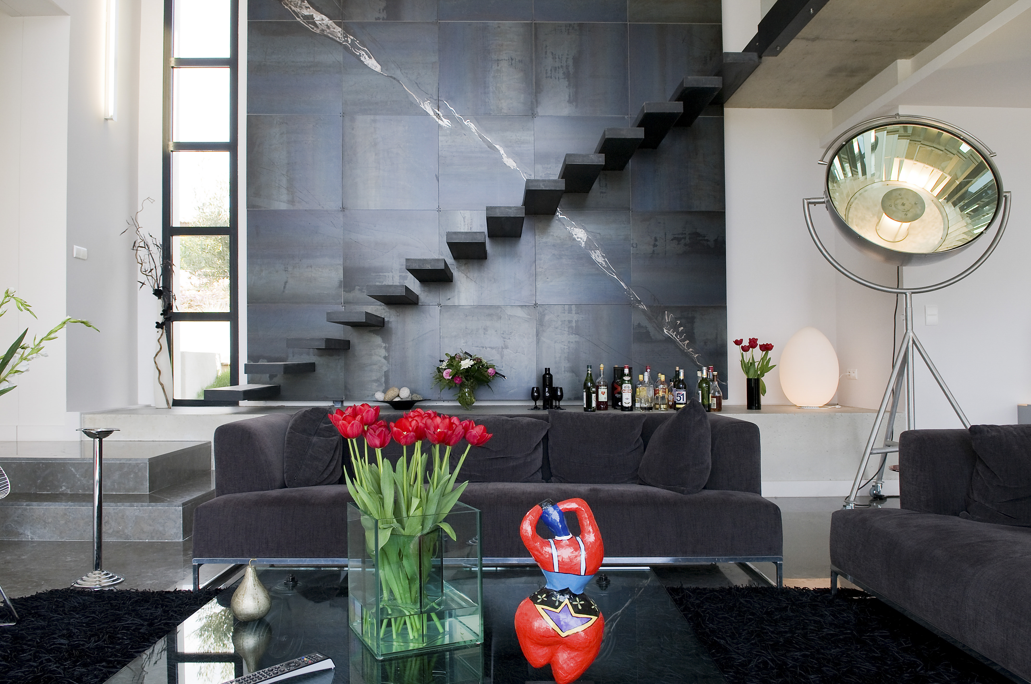 En effet cette réalisation devait favoriser un lieu de vie familial, « un cocon parental » mais aussi un espace de rencontres entre amis. C’est ainsi que les espaces ont été largement dimensionnés et ouverts sur l'extérieur, mais également centrés sur l'espace de vie présentant une double hauteur et vitré sur son ensemble. Une paroi intérieure a été réservée en vue de la création d’un escalier (réalisé par l'artiste Stéphane Caniard) conçu comme une sculpture murale « intimidant » et « interrogeant » le visiteur qui voudrait se rendre dans la partie plus privative.