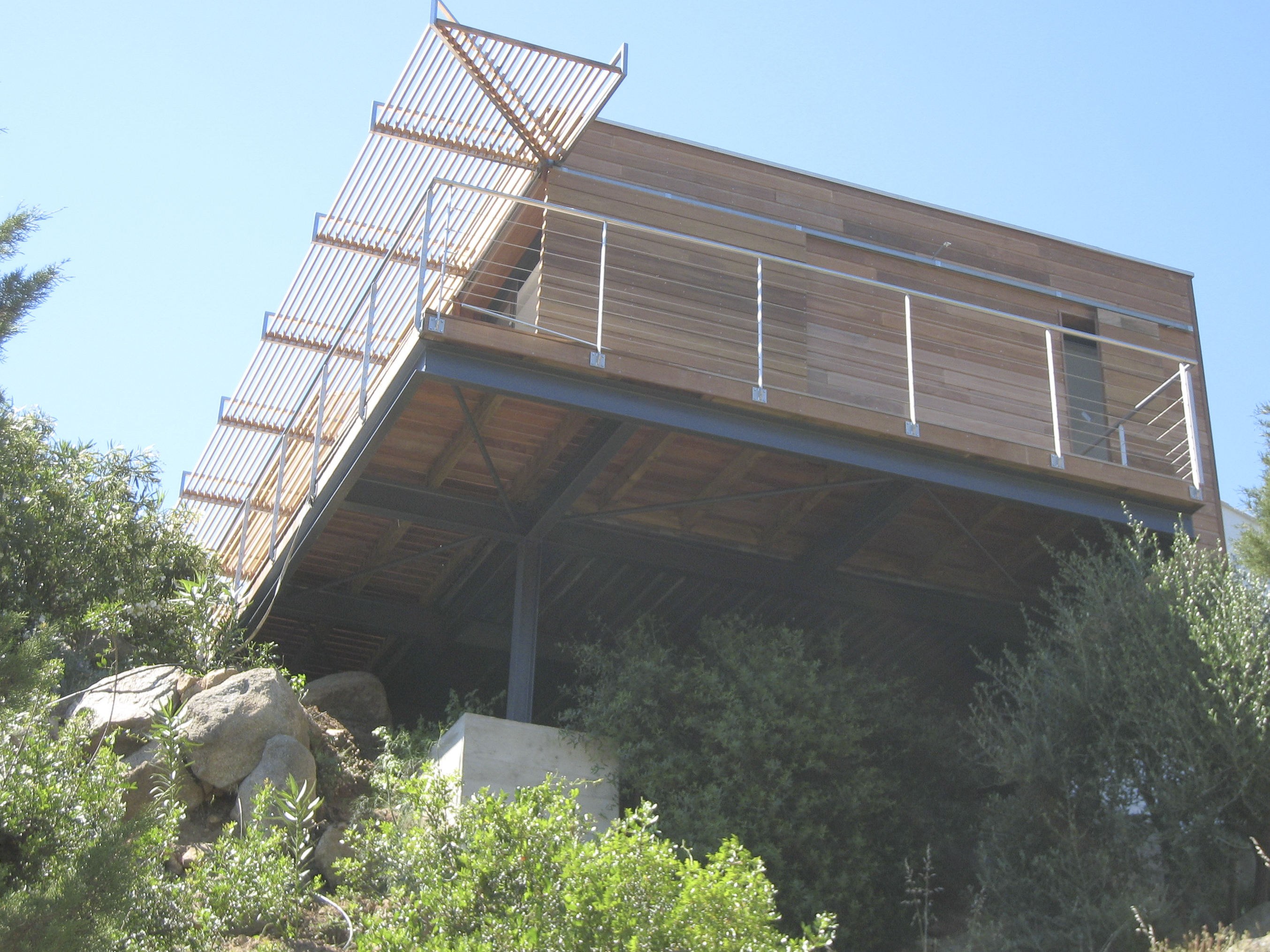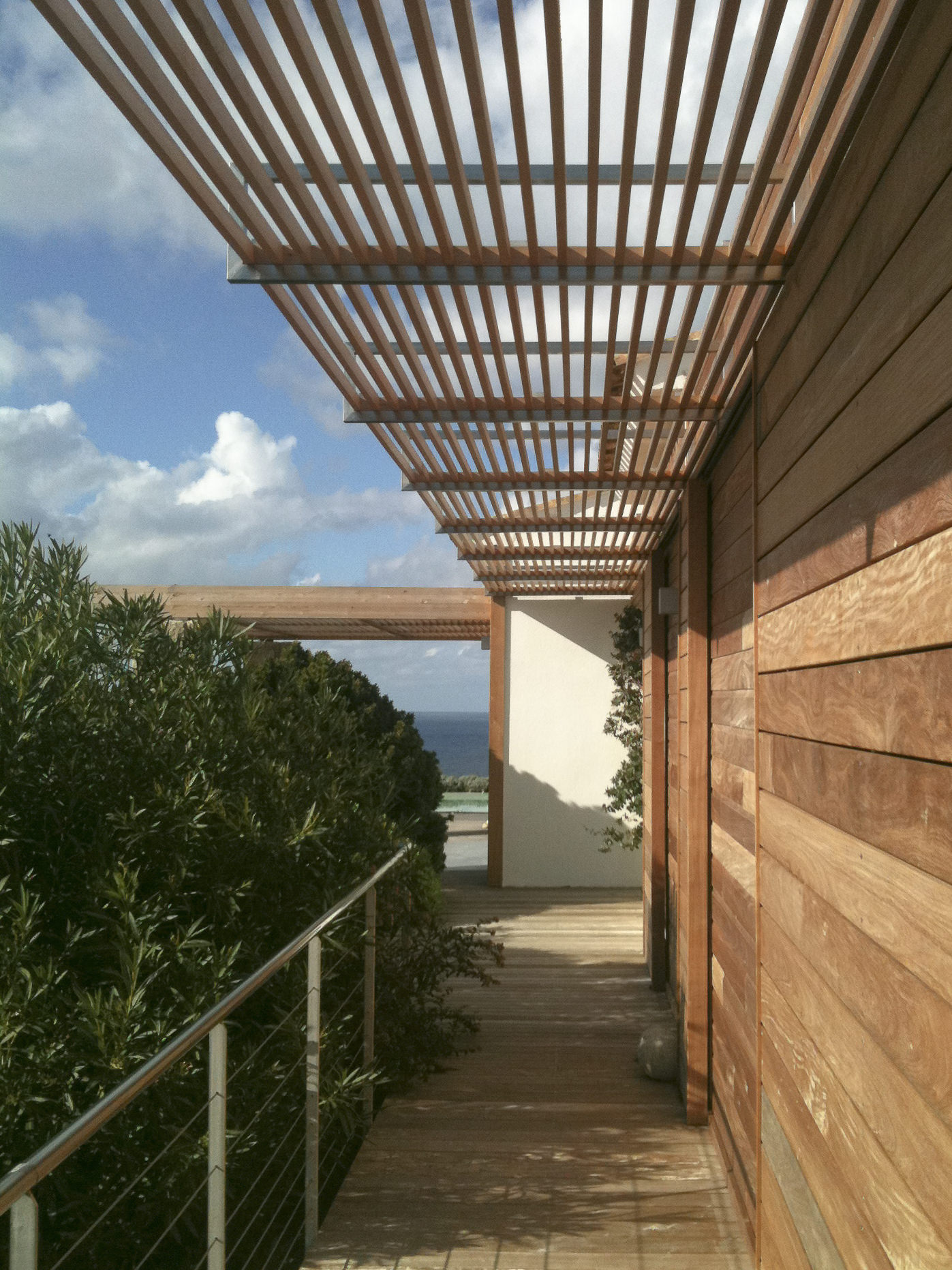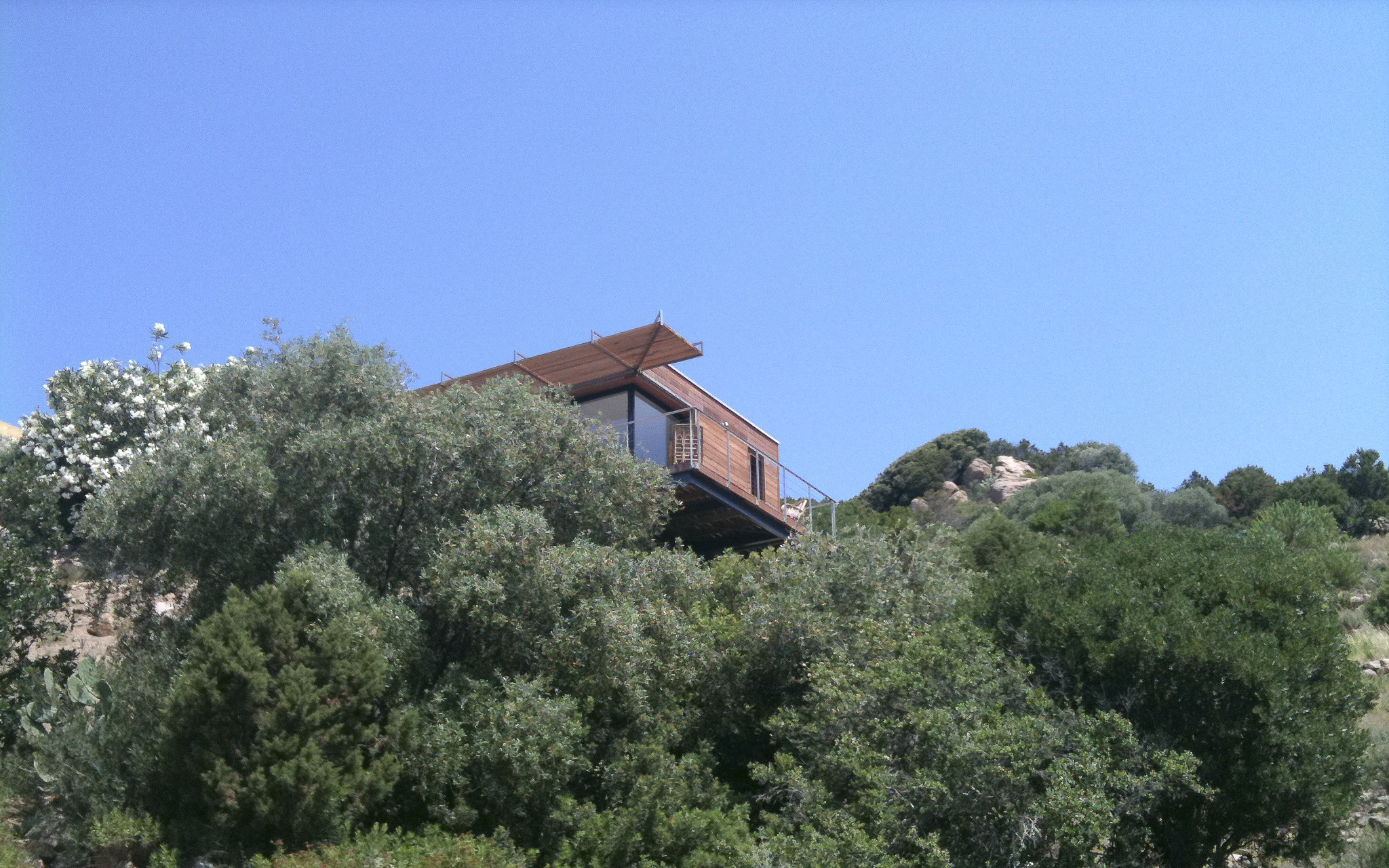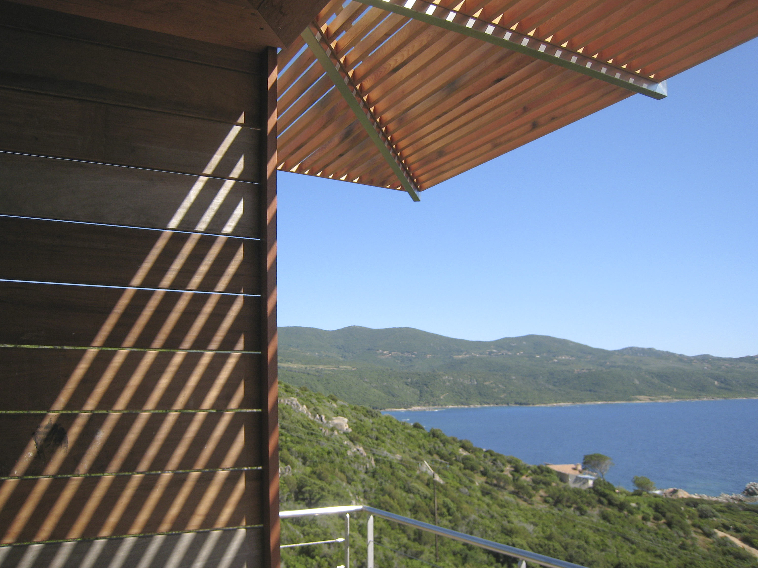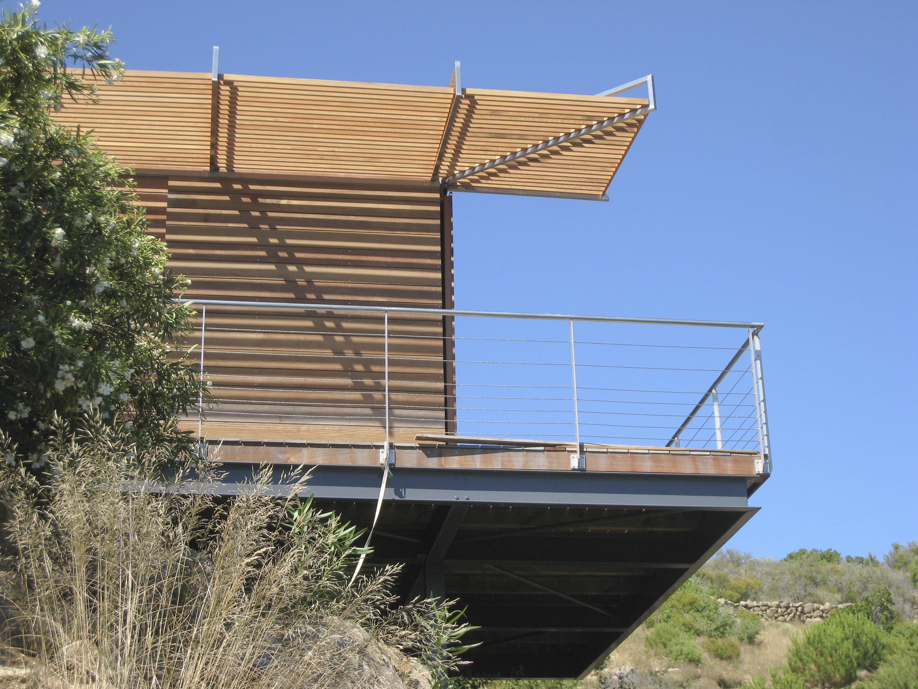 Ainsi cette réalisation semble en suspension sur la végétation et offre à ces aimables occupants une large visibilité sur la « grande bleue ».