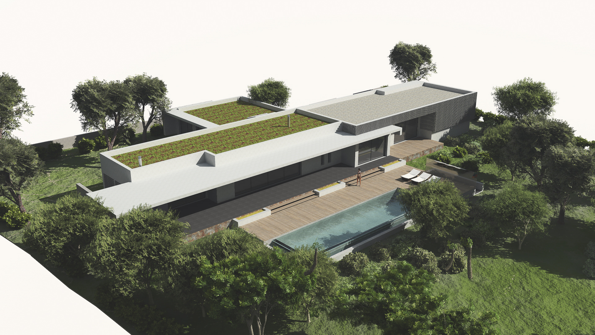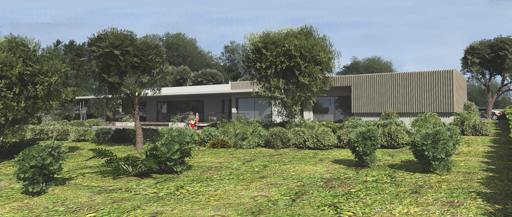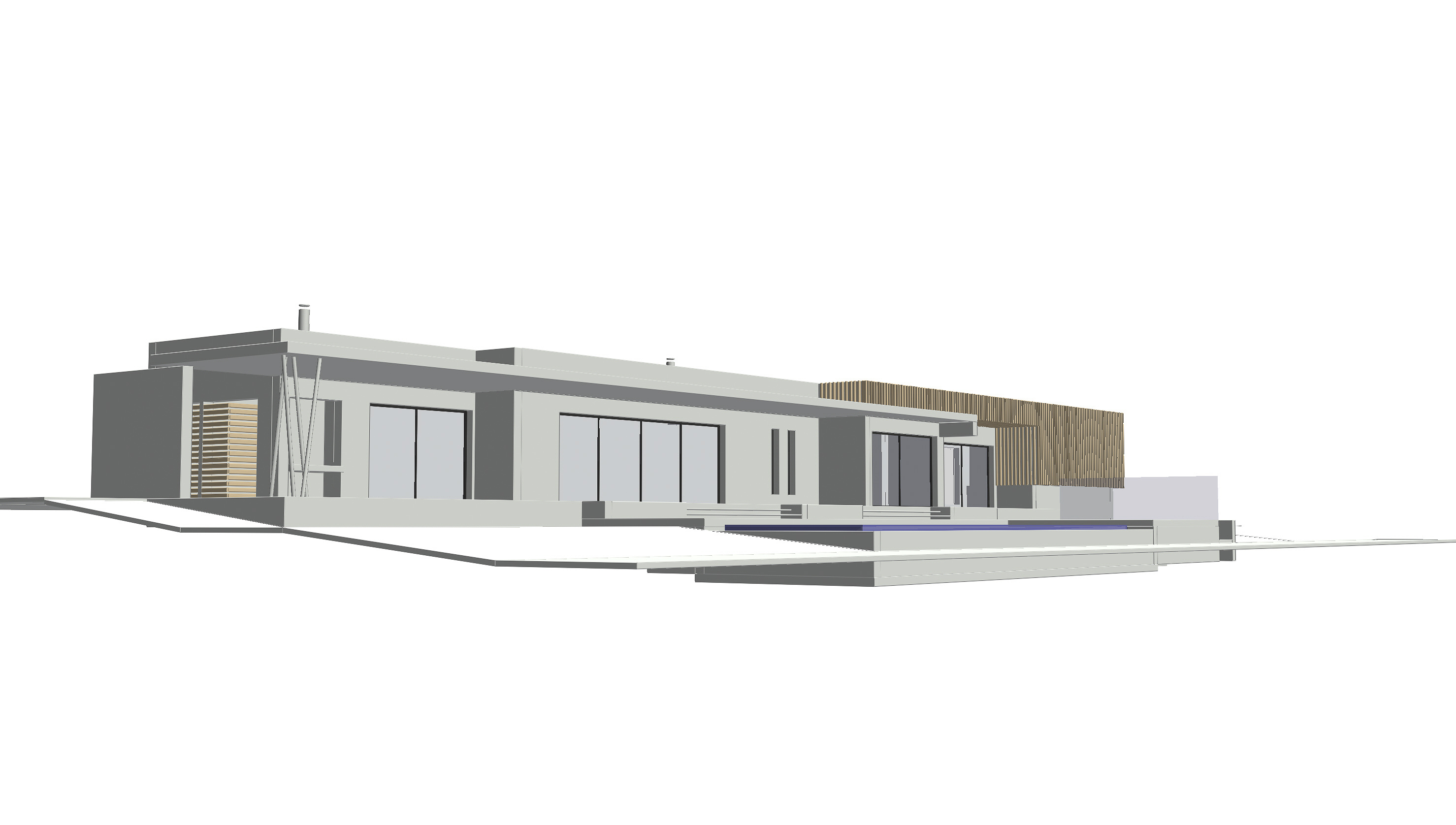 • Parement bois en mélèze rétifié. Pose à claire voie